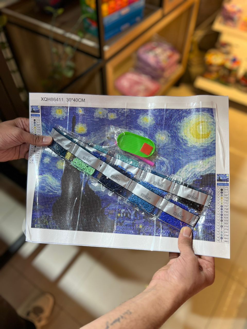 کیت نقاشی الماسی (دایموند پینتینگ) طرح ونگوگ در ابعاد ۳۰ در ۴۰ سانتیمتر، فرصتی بینظیر برای تبدیل شدن به خالق یک اثر هنری ماندگار است. با چسباندن هزاران نگین براق شبیه الماس بر روی بوم پارچهای باکیفیت، یکی از مشهورترین طرحهای جهانی ونگوگ (مانند شب پرستاره یا آفتابگردان) را در خانهی خود بازسازی کنید.