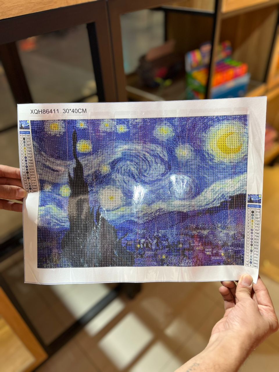 * نقاشی الماسی ونگوگ، دایموند پینتینگ ۳۰×۴۰، کیت نقاشی با الماس، شب پرستاره، بوم پارچهای.